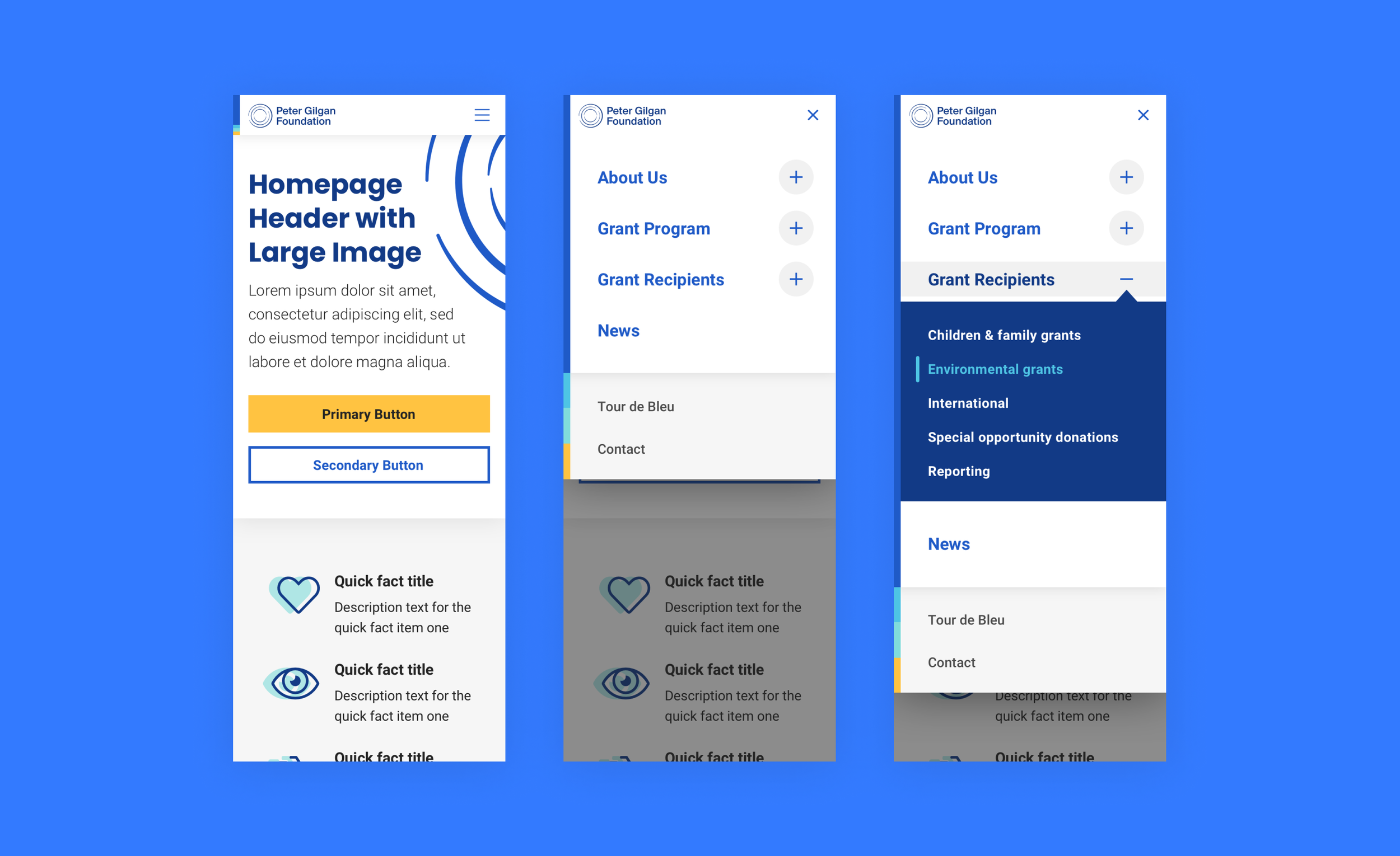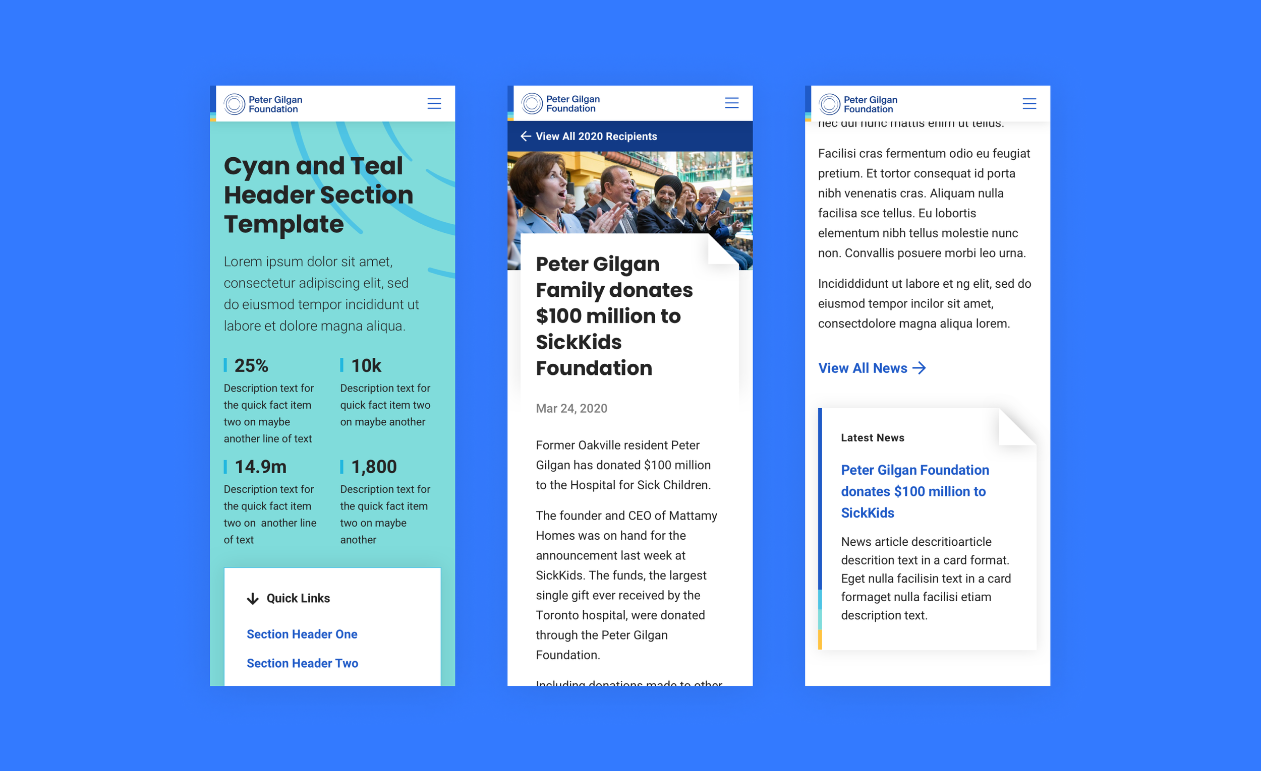 Full Website Redesign and digital re-brand project for Peter Gilgan Foundation.